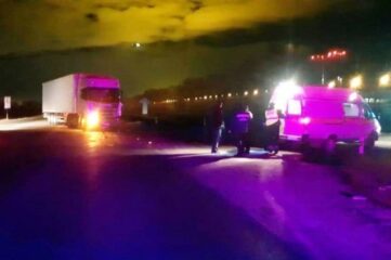 Nissan столкнулся с грузовиком и сбил пешеходов на обочине федеральной трассы.